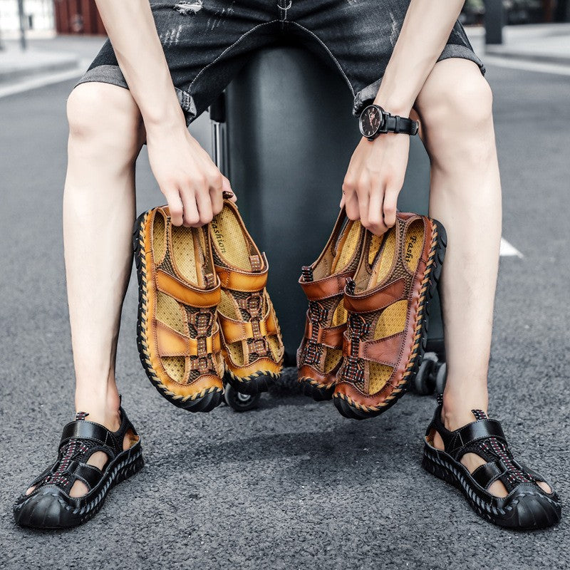 🔥Men's Breathable Knit Faux Leather Sandals👣